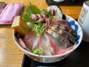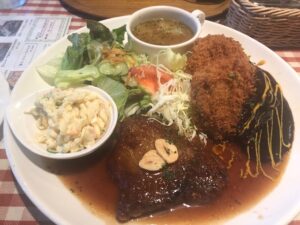今回は日曜だったので日替わりメニューはなくて、フライドチキンカレーとハンバーグ目玉チーズカレーにしました。