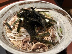 こちらのお店では、峠下牛のしぐれ煮と天かすものっていて、キムチが付いてます!